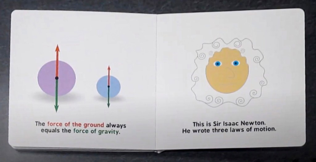 Moving on, here are sample pages from Newtonian Physics for Babies, by Chris Ferrie: